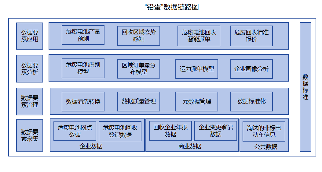 党中央、国务院高度重视发展绿色低碳新质生产力,出台《生产者责任延伸制度》《固体废物污染环境防治法》,并对废物收集提出线上线下相结合的要求。但是废铅蓄电池回收过程面临非法拆解多、二次污染严重等监管难题,每年有近620万吨至650万吨的废铅蓄电池(危险废物)散落在超过100万家产废门店,由于溯源数据缺失,有资质的回收企业无法建立逆向物流,造成生态环境监管盲区。浙江千源百荟互联网科技有限公司充分应用动力电池大循环数据推动制造与循环双链融合,打造智能化逆向物流可溯体系。