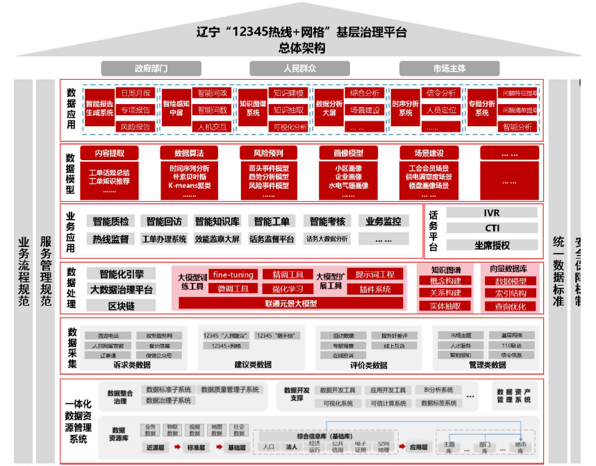 当前基层社会治理面临三大挑战:一是如何快速响应群众诉求,有效化解基层矛盾;二是如何从群众诉求中捕捉突发事件、风险事件及苗头性、倾向性问题,通过高效协同机制将其化解在萌芽状态;三是如何精准识别群众诉求中的共性问题,为城市治理提供科学的决策依据。联通数字科技有限公司建设辽宁“12345热线+网格”平台,运用大模型、区块链等技术,汇聚和感知热线数据,实现全渠道受理、闭环监管,打造政务服务“总客服”,推动社会治理更加精准、协同、高效。