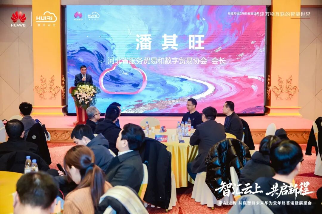1月23日,河北省服务贸易和数字贸易协会会长潘其旺应邀出席华为云与河北慧日信息技术有限公司(慧日云企)联合举办的“智汇云上 共启新程”年终答谢暨展望会。本次活动在石家庄西美酒店举行,汇聚了众多企业代表与合作伙伴,共同探讨AI智能体、行业数智化转型等前沿议题,展望2026年智能化发展新路径。