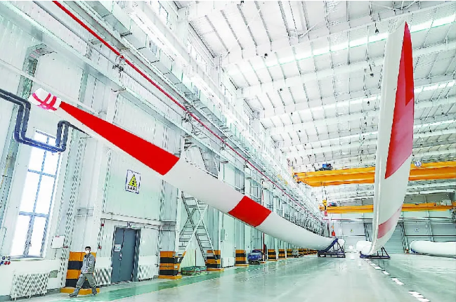 在张北艾郎风电科技发展有限公司,刚生产好的叶片正在等待装车。武殿森 摄